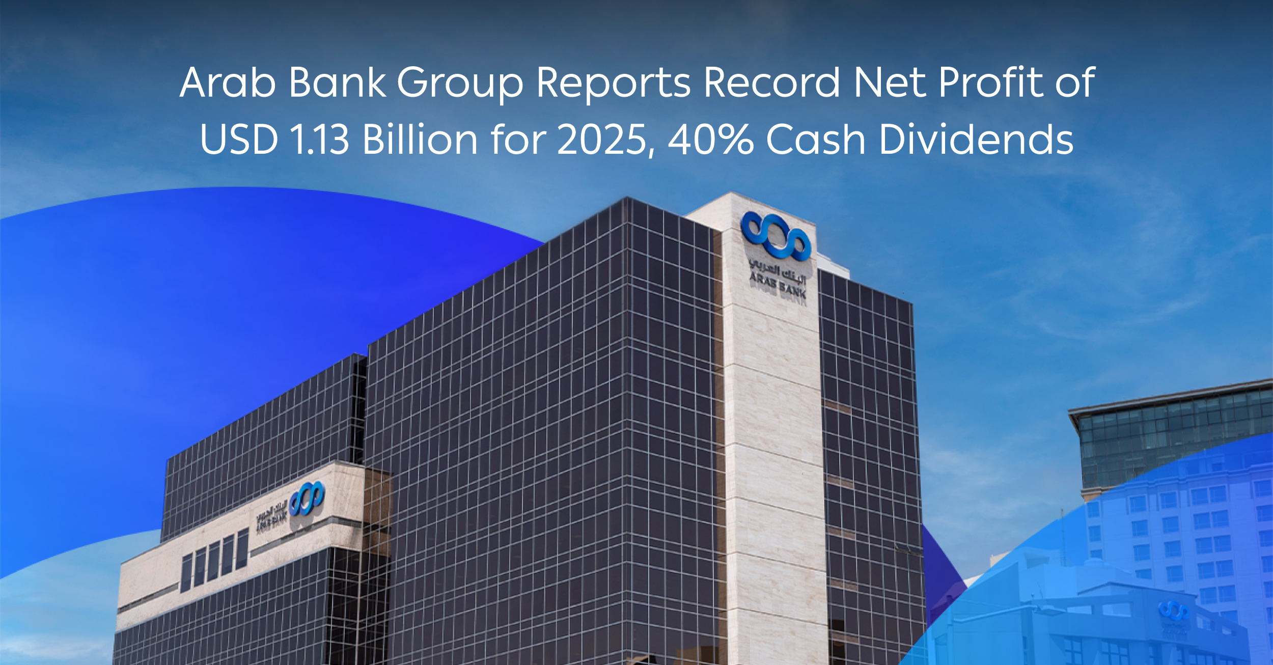 Arab Bank Group Reports Record Net Profit of USD 1.13 Billion for 2025, 40% Cash Dividends
